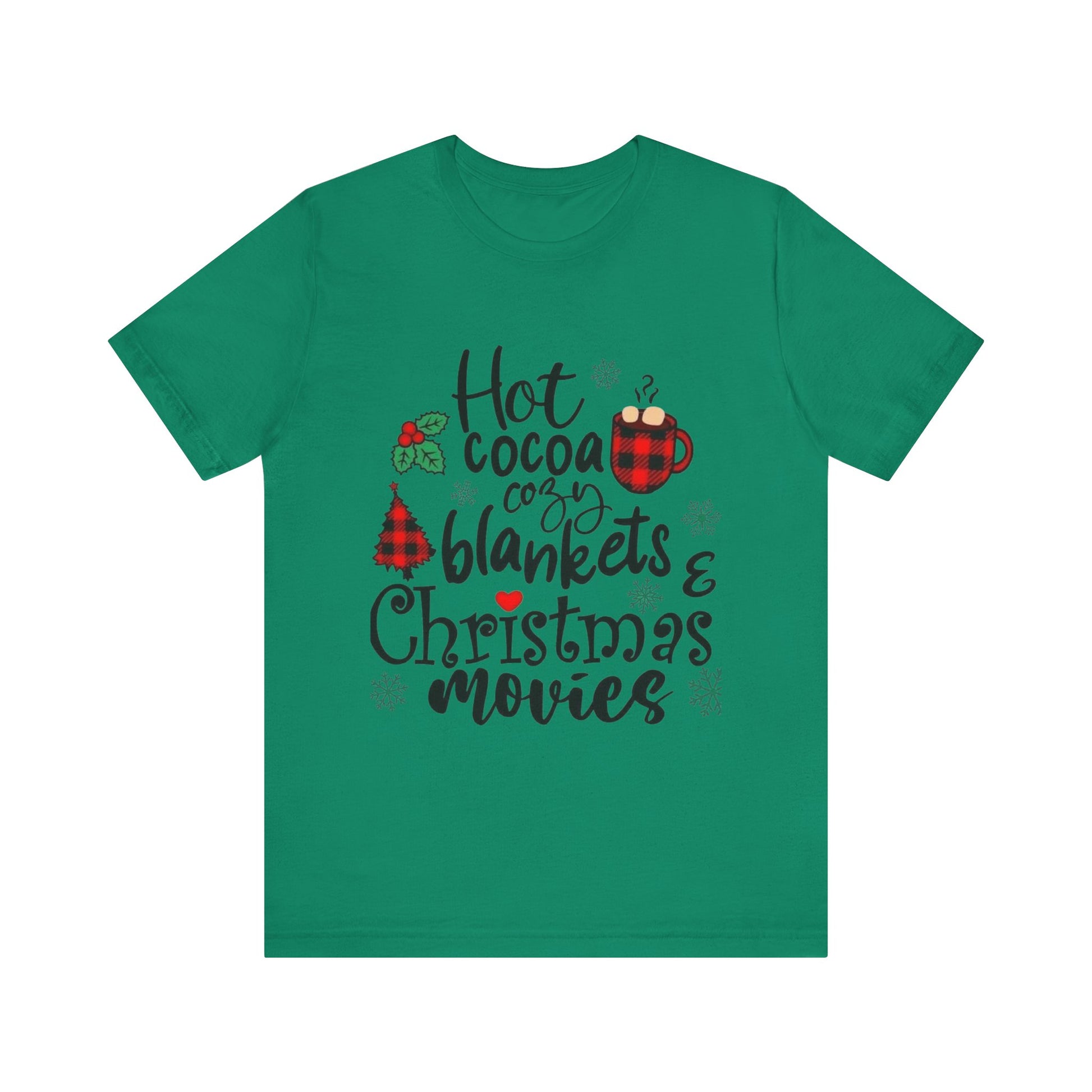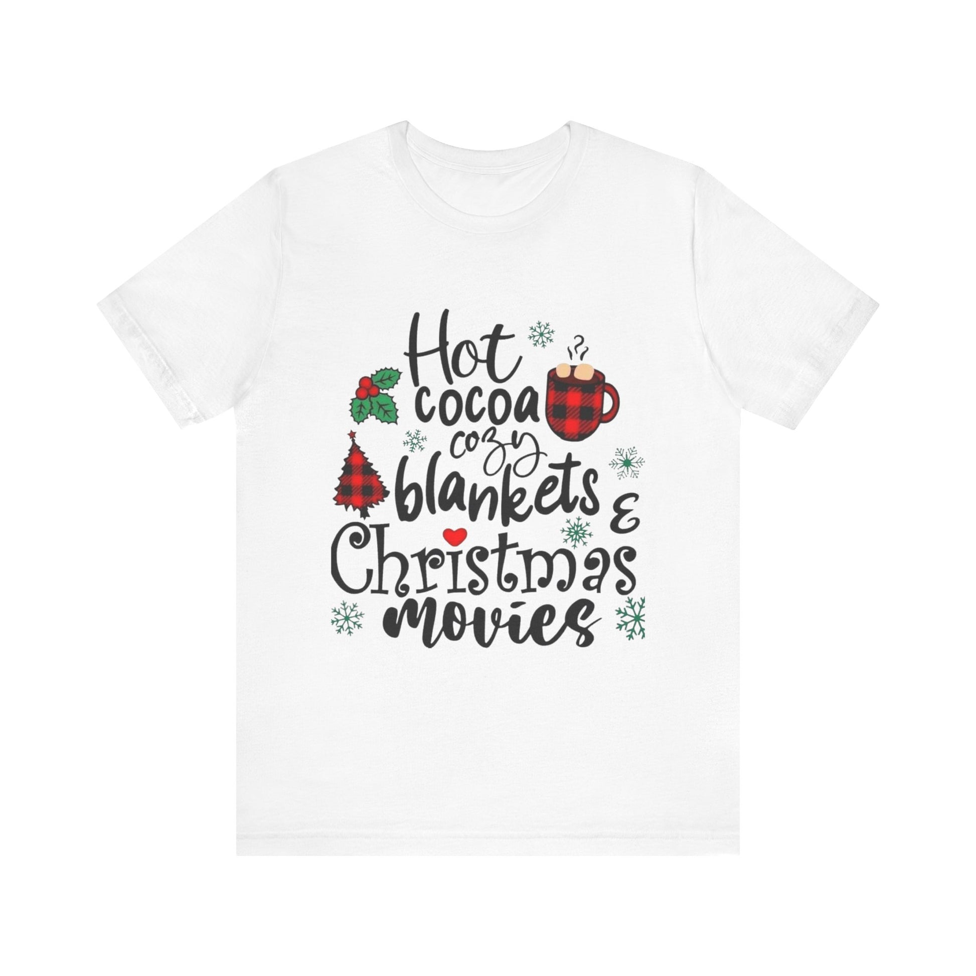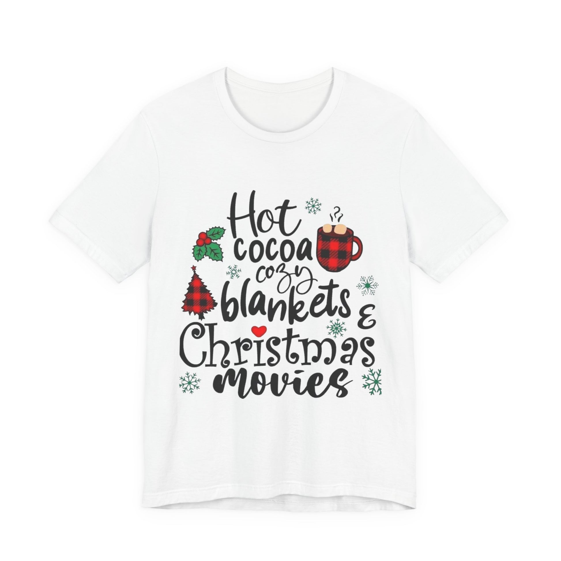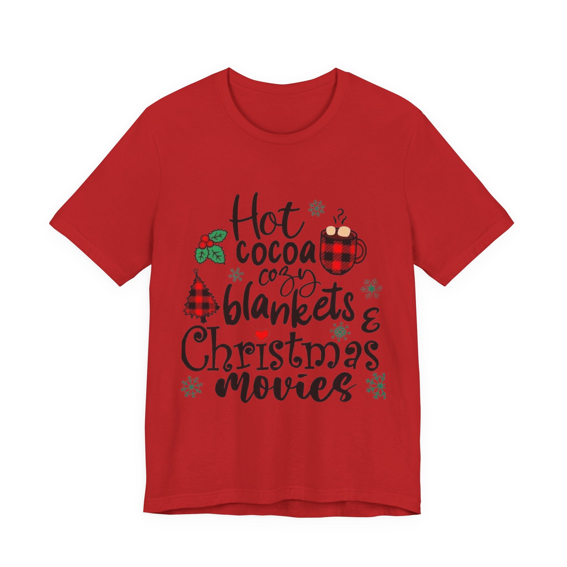 Christmas Tee – "Hot Cocoa, Cozy Blankets & Christmas Movies" Holiday Shirt
