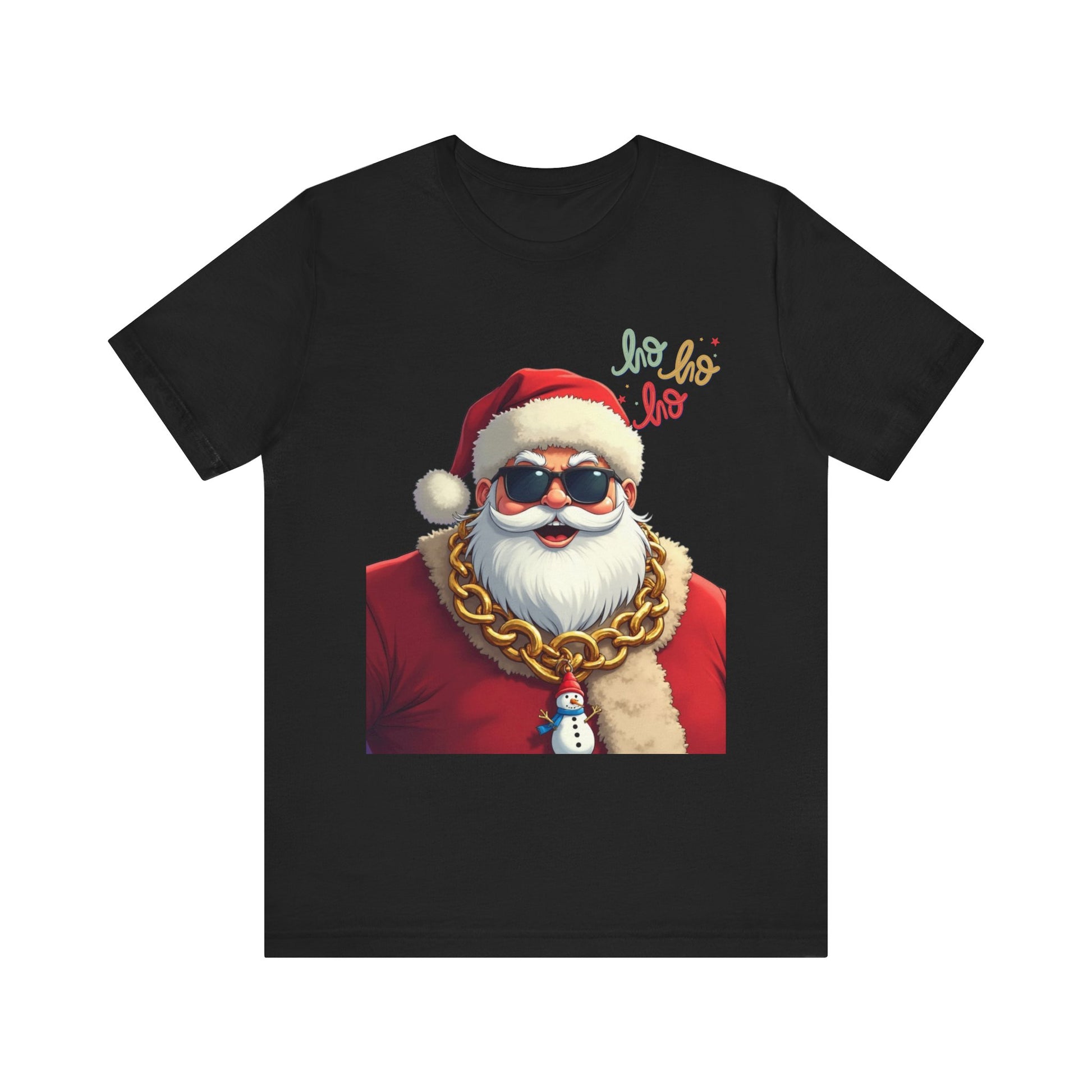 This lightweight cotton tee brings playful, modern holiday swagger to casual wardrobes. A bold Santa portrait—sunglasses, gold chain, and a tiny snowman pendant—sits front and center, blending classic festive motifs with streetwise attitude. Soft, breathable Airlume cotton keeps the shirt comfortable for long wear; neat retail fit and crew neckline make it easy to layer under jackets or wear on its own. The image’s vivid colors and crisp lines pop thanks to professional printing methods, so the graphic stays sharp wash after wash. Wear it to add humor and personality to holiday gatherings, tree-lighting nights, or relaxed winter outings.