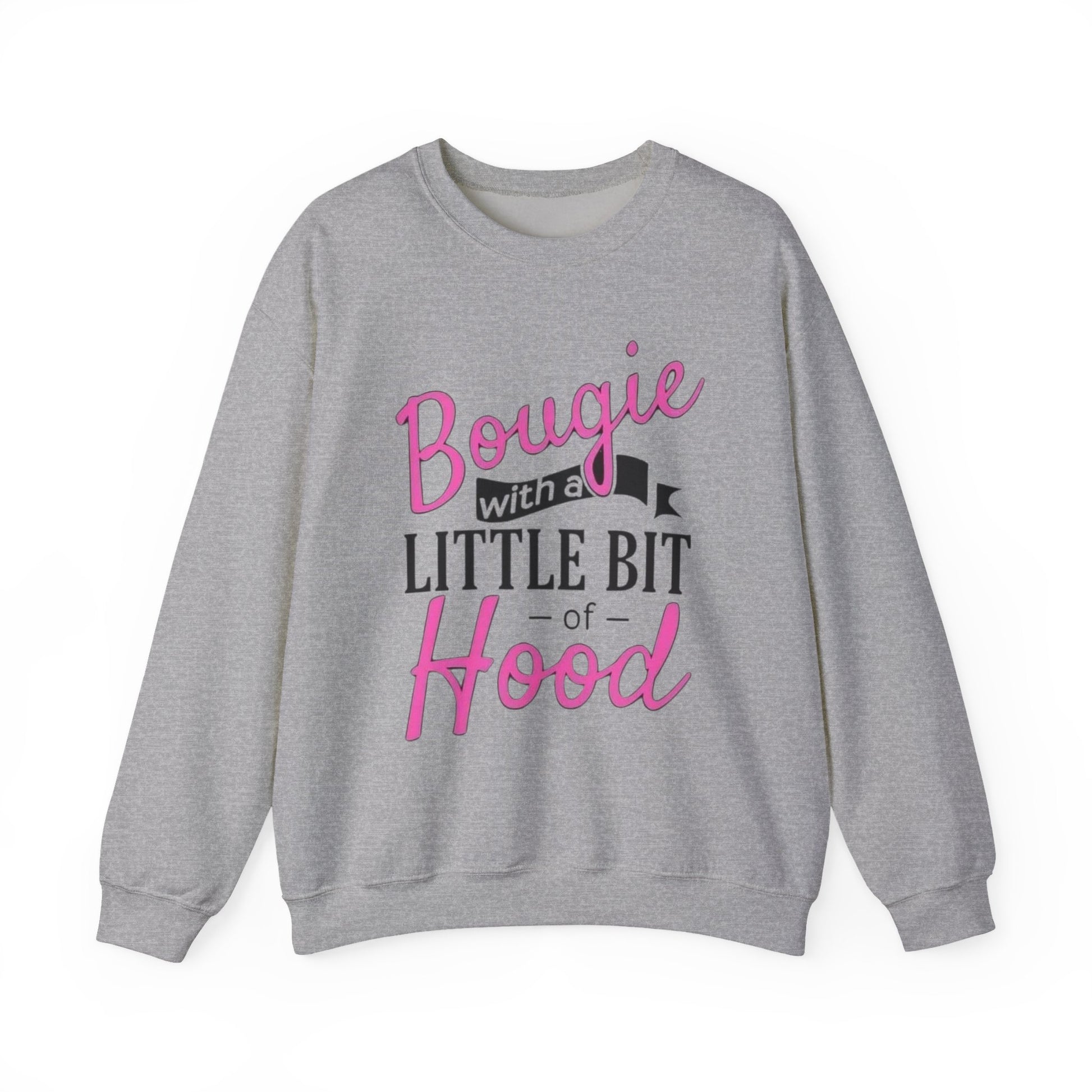 Crewneck Sweatshirt – "Bougie with a Little Bit of Hood" Pink Script Graphic