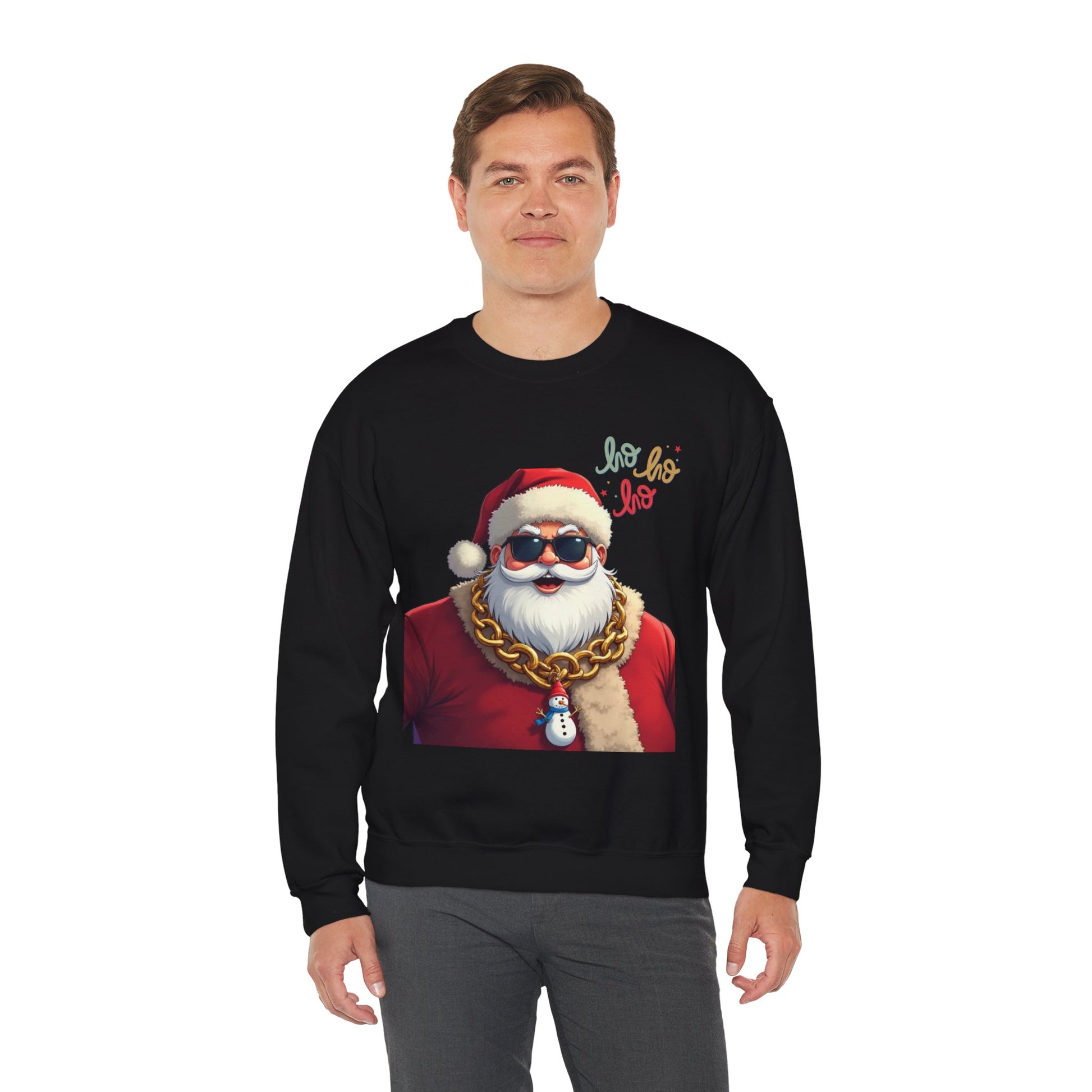 Santa with Gold Chain Crewneck Sweatshirt — Ho Ho Ho Holiday Pullover